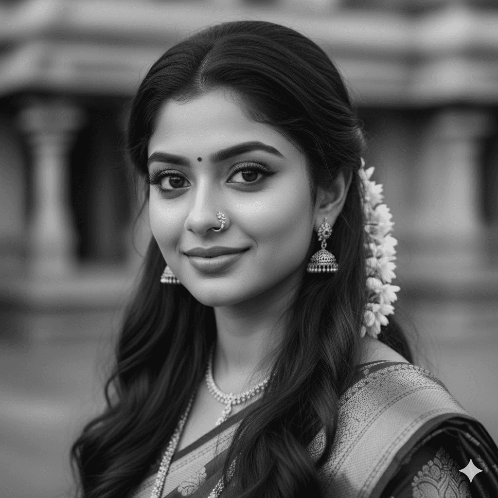 Apply a monochromatic black-and-white filter to this image for a timeless, classic look. Dont change facial features.